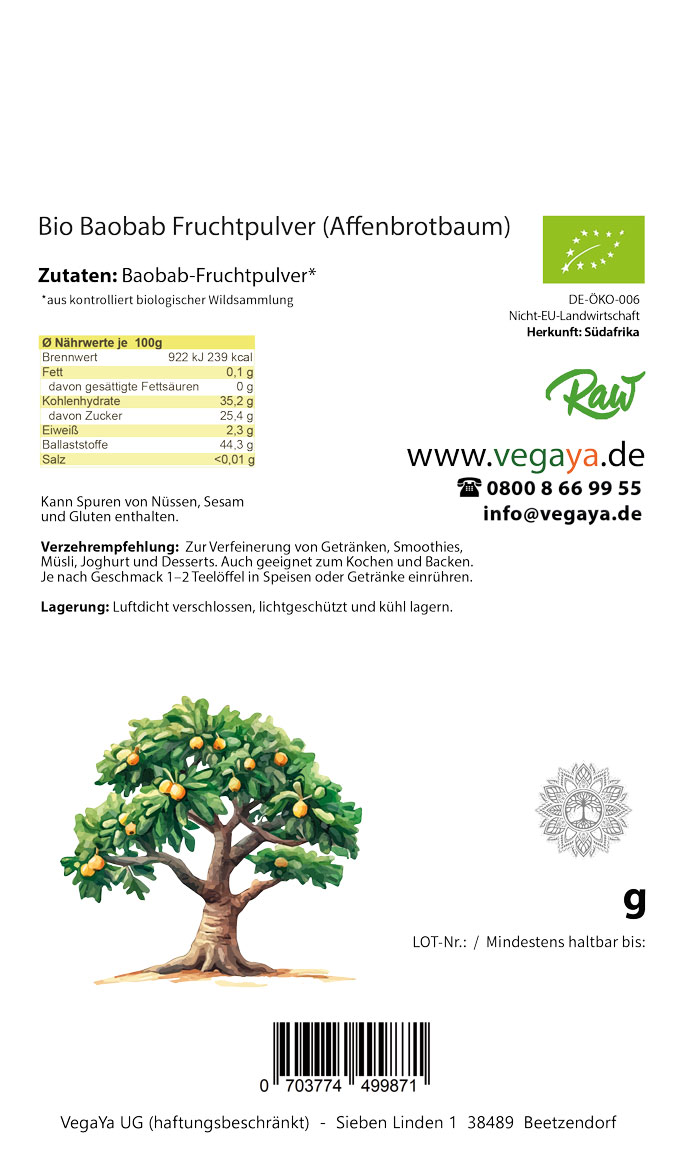 Zutaten: Baobab Fruchtpulver*